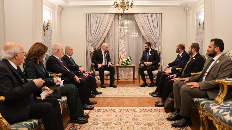 Le Caire-SANA / Le Président de la République, Ahmad Al-Charaa, et le ministre des Affaires étrangères et des Expatriés, Assaad Al-Chaibani, ont tenu une réunion avec le Président égyptien, Abdel Fattah al-Sissi, en marge du sommet arabe extraordinaire « Sommet de Palestine », tenu au Caire.