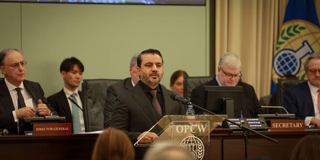 La Haye-SANA / Le ministre des Affaires étrangères, M. Assaad Al-Chaibani, a prononcé un discours à la réunion du Conseil exécutif de l’Organisation pour l’interdiction des armes chimiques à La Haye aux Pays-Bas.