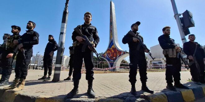 Damas-SANA / Les élements de la sécurité se déploient sur la place des Omeyyades à Damas pour maintenir la sécurité des citoyens lors des célébrations marquant le 14e anniversaire de la révolution syrienne.