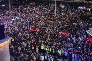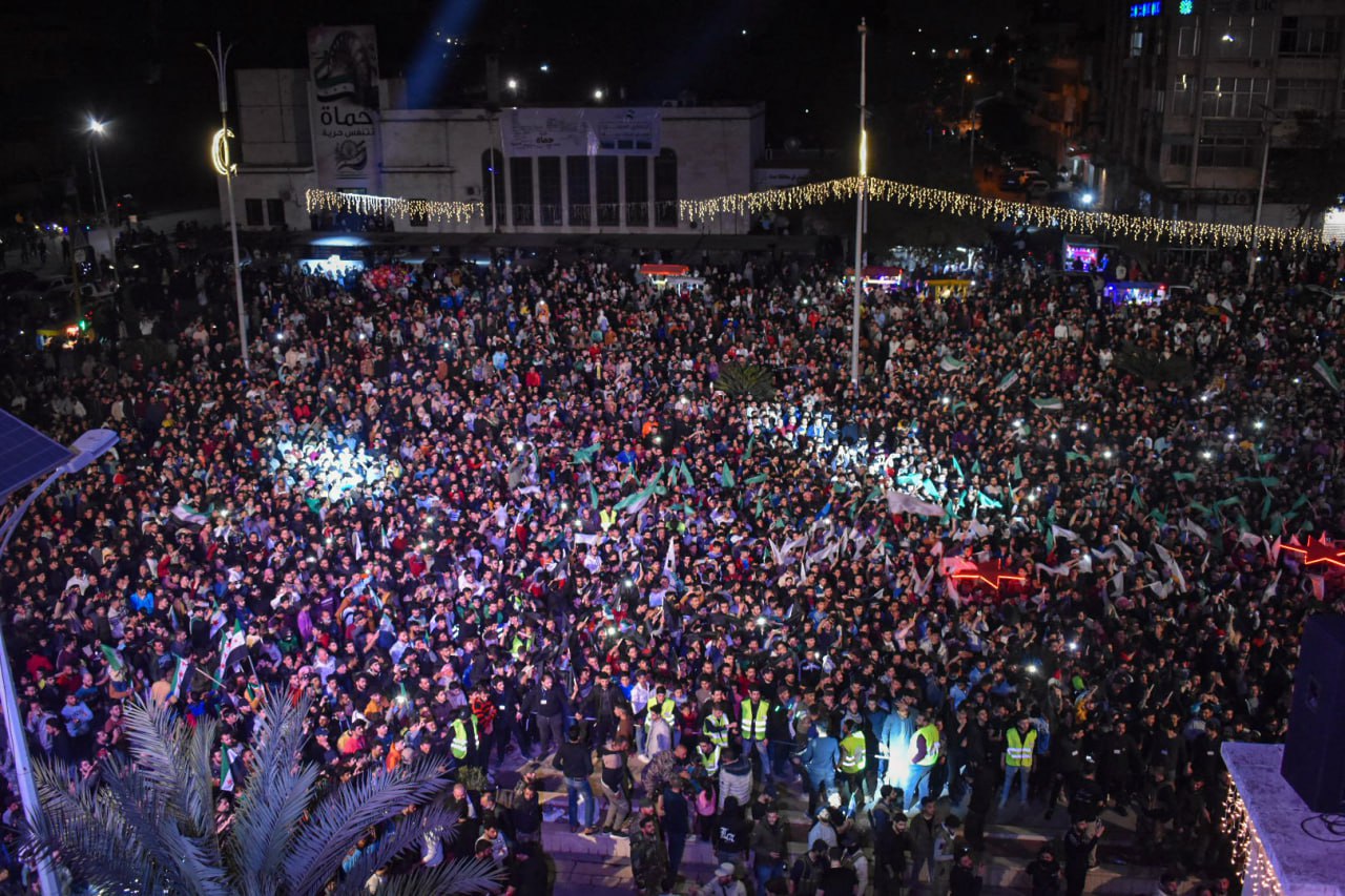 Hama – SANA / Pour célébrer le 14e anniversaire du déclenchement de la révolution syrienne, des milliers de citoyens se sont rassemblés ce soir sur la place Al-Assi à Hama.