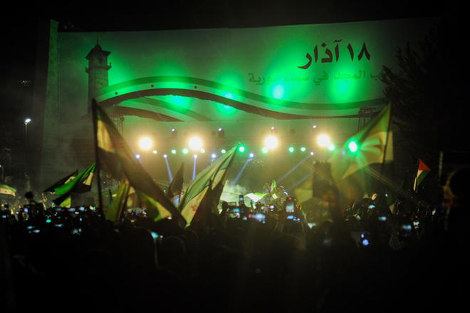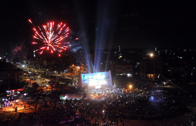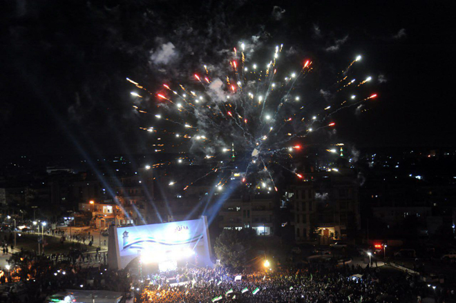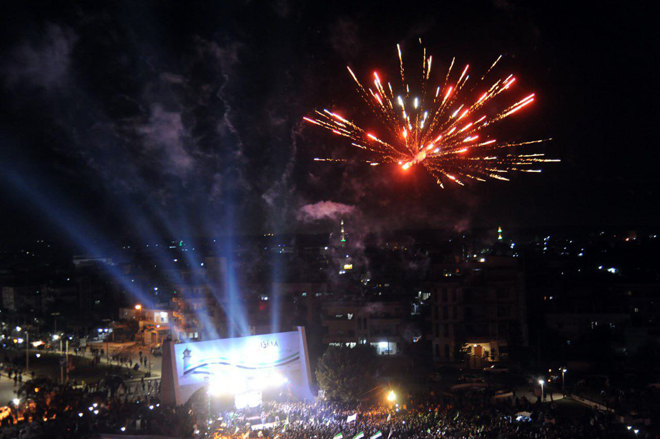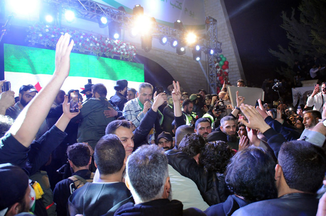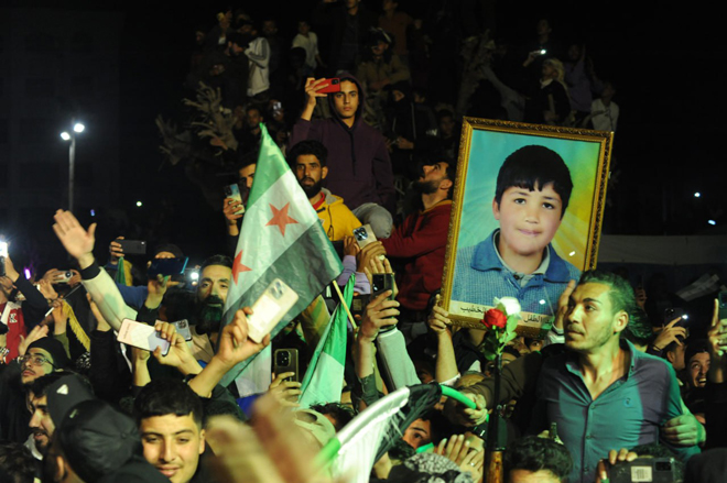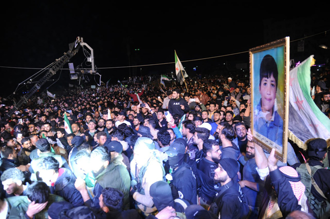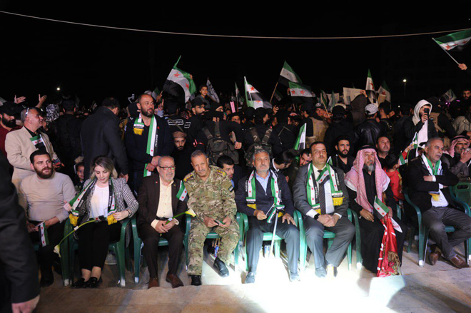 Daraa – SANA / À l’occasion du 1er anniversaire de la victoire et de la libération, des centaines de personnes du gouvernorat de Daraa se sont rassemblées hier soir sur la place Panorama au centre-ville pour célébrer le 14e anniversaire de la révolution syrienne.