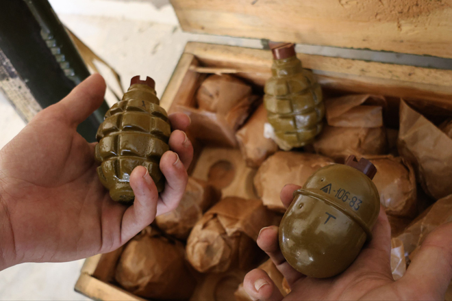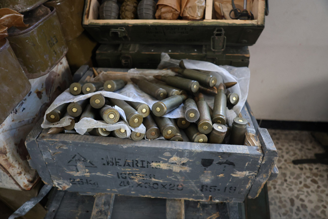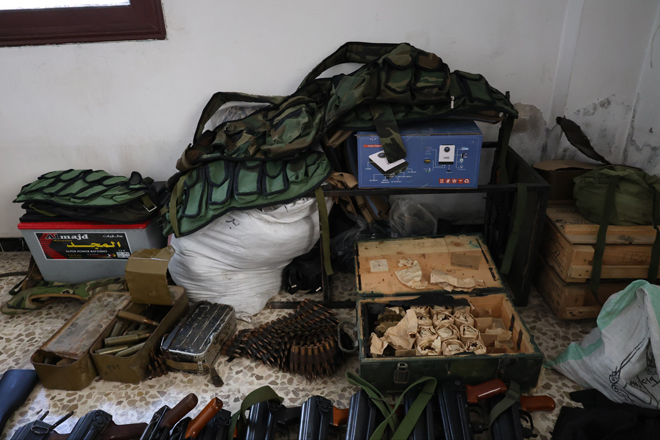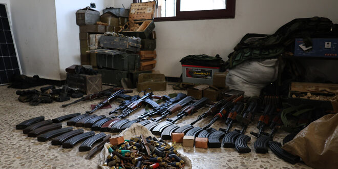 Homs – SANA / Le ministère de l’Intérieur a annoncé que la Direction de la sécurité publique avait découvert un dépôt d’armes, ainsi que des munitions, des bombes et des jumelles de vision nocturne, dans la localité d’al-Aziziyah, à l’ouest de Homs.