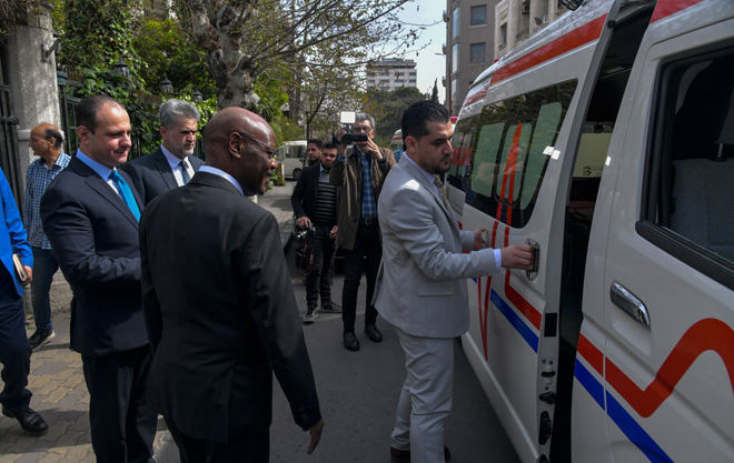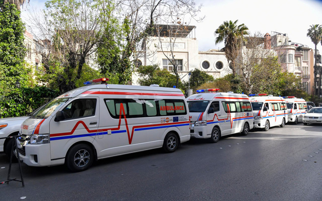 Damas – SANA / Le ministère de la Santé a reçu aujourd’hui quatre ambulances, fournies par le Fonds des Nations Unies pour la population « FNUAP » et financées par le bureau de la Commission européenne à la protection civile et aux opérations d’aide humanitaire (ECHO).