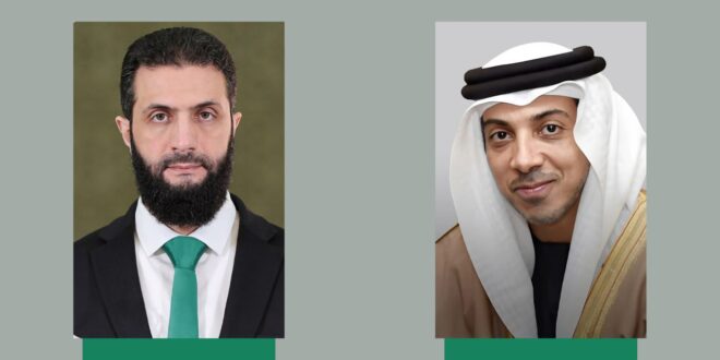 Damas-SANA / Le président Ahmad Al-Charaa a reçu un télégramme de félicitations du Cheikh Mansour bin Zayed Al Nahyan, vice-président des Émirats arabes unis, vice-Premier ministre et président de la Cour présidentielle, à l’occasion de la formation du nouveau gouvernement syrien.