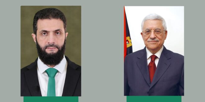 Damas-SANA / Le président Ahmad Al-Charaa a reçu un télégramme de félicitations du président de l’État de Palestine, Mahmoud Abbas, à l’occasion de l’annonce de la formation du nouveau gouvernement syrien.