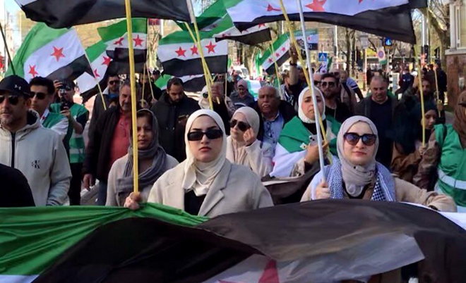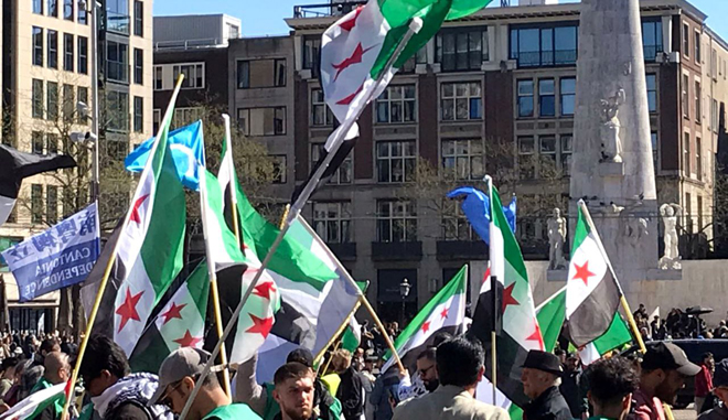 La communauté syrienne aux Pays-Bas organise une manifestation dans le centre d’Amsterdam pour réclamer la levée des sanctions contre la Syrie