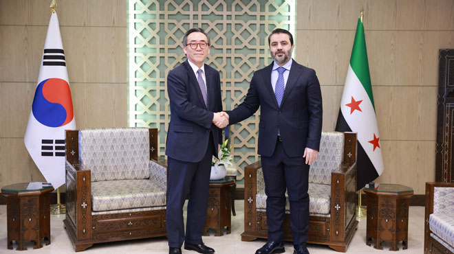 Damas-SANA/Le ministre des Affaires étrangères, Assaad Al-Chaibani, a reçu aujourd’hui à Damas une délégation de haut niveau de la République de Corée du Sud conduite par le ministre des Affaires étrangères de la Corée du Sud, Cho Tae-yul, marquant ainsi une première étape dans le cours des relations entre les deux pays.