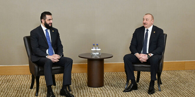 Selon l’Agence de presse azerbaïdjanaise, Aliyev a fait savoir, lors d’une rencontre avec M. le président Ahmad al-Charaa en marge du Forum diplomatique d’Antalya 2025 en Turquie, que son pays accueille favorablement les nouveaux changements en Syrie, qui ont été suivis de l’envoi d’une délégation diplomatique en Syrie et de la reprise du fonctionnement de l’ambassade azerbaïdjanaise à Damas, après une longue fermeture en raison des politiques du régime déchu.