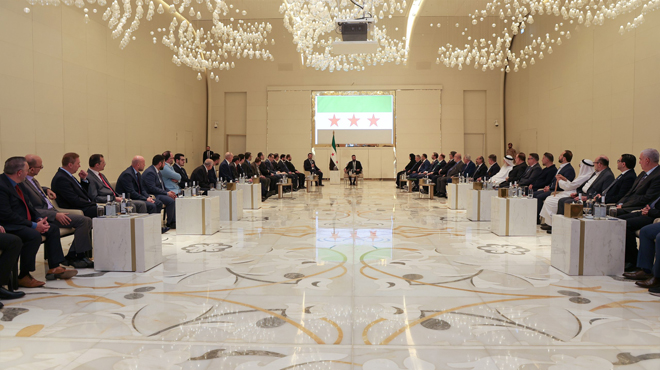 Damas-SANA / Le président Ahmad Al-Charaa a reçu aujourd’hui au Palais du Peuple à Damas …