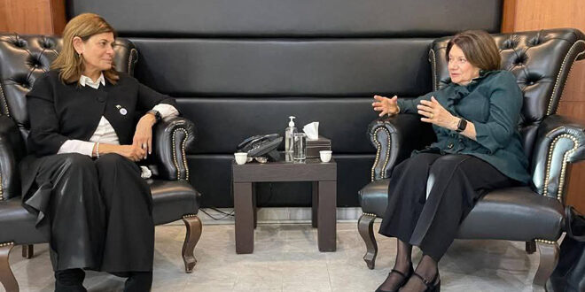 Damas-SANA / La ministre des Affaires sociales et du Travail, Hind Kabawat, a discuté avec la Secrétaire générale adjointe aux affaires politiques et à la consolidation de la paix Rosemary DiCarlo, envoyée spécial adjoint du Secrétaire général, Najat Rochdi a et la délégation qui l’accompagne, d’importants projets visant à soutenir la société en Syrie.