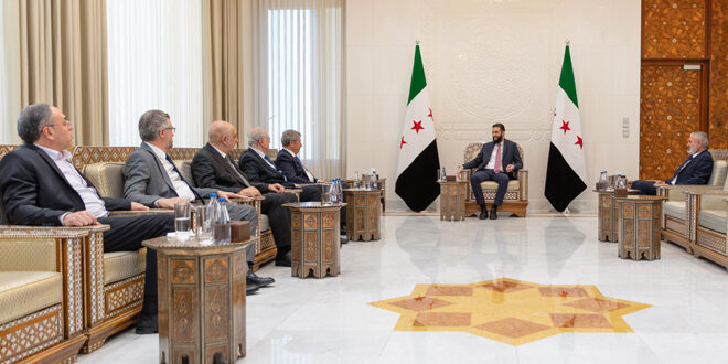 Damas-SANA / Le président Ahmad Al-Charaa a reçu aujourd’hui au Palais du Peuple à Damas …