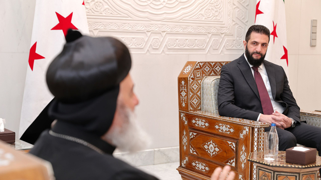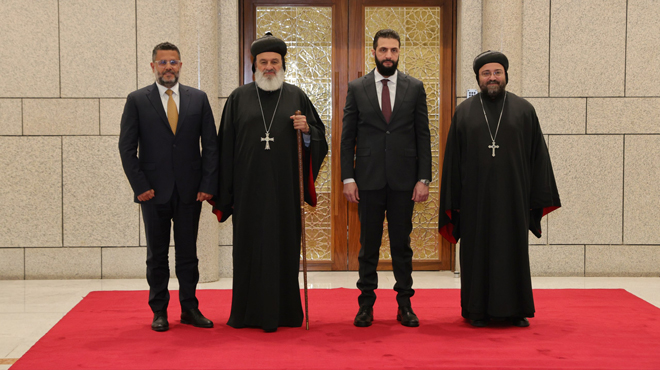 Damas – SANA / Le Président de la République, M. Ahmad al-Charaa, a reçu au Palais du Peuple une délégation de l’Église syriaque orthodoxe conduite par le Patriarche Ignace Ephrem II.