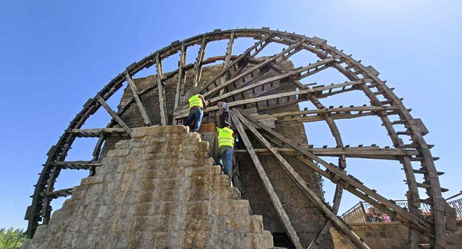 Hama – SANA / Dans le cadre de l’initiative « Hama bat à nouveau », le département des Norias du conseil municipal de Hama a commencé les travaux d’entretien de la Noria de Jisriya qui se trouve à l’entrée du parc Um Al Hassan dans le centre-ville.