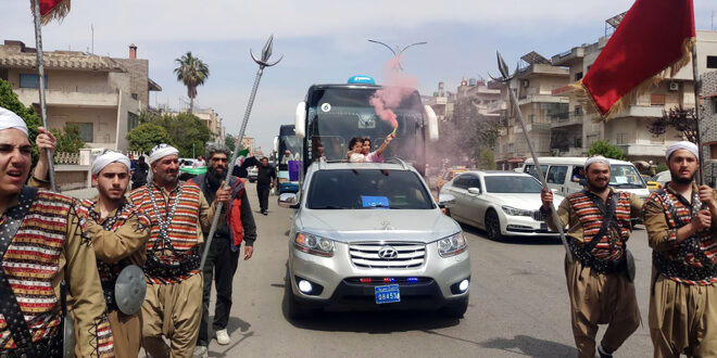 Homs – SANA / Dans le cadre des efforts continus pour assurer un retour sûr et digne des personnes déplacées, la ville de Homs a accueilli aujourd’hui deux convois transportant des déplacés forcés provenant des camps du nord syrien, qui ont dû quitter leurs maisons après avoir été déplacés par le régime déchu.