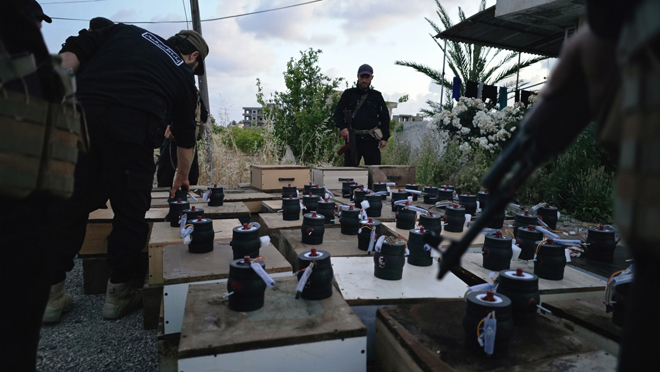 Lattaquié-SANA/Dans le cadre d’une opération de sécurité précise et bien planifiée, la direction de la sécurité de Lattaquié a saisi un immense entrepôt dans le village de Bhamra dans la Banlieue de Qardaha. L’entrepôt contient des engins explosifs préparés pour être explosés en vue de cibler des zones sûres et de déstabiliser le pays.
