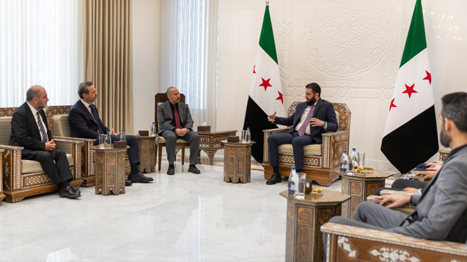 Damas-SANA/Le président de la République arabe syrienne, M. Ahmad al-Charaa, s’est entretenu avec le ministre turc de l’Énergie et des Ressources naturelles, M. Alparslan Bayraktar, et la délégation l’accompagnant, au Palais du Peuple à Damas. La rencontre s’est déroulée en présence du ministre de l’Énergie, M. Mohammad al-Bachir, afin de renforcer la coopération bilatérale entre la Syrie et la Turquie dans les domaines de l’énergie et des ressources naturelles.