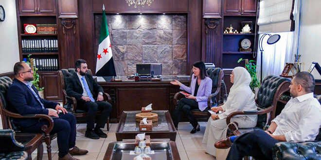 Damas-SANA/ le ministre de l’Administration locale et de l’Environnement, Mohammed Anjarani a discuté avec Tanja Lohmann, cheffe de l’Agence allemande de coopération internationale (GIZ) en Syrie, et la délégation qui l’accompagne, des opportunités de coopération potentielles pour faciliter le retour des personnes déplacées dans leurs zones, sur la base de plans communs et en utilisant l’expertise et les programmes fournis par l’agence.
