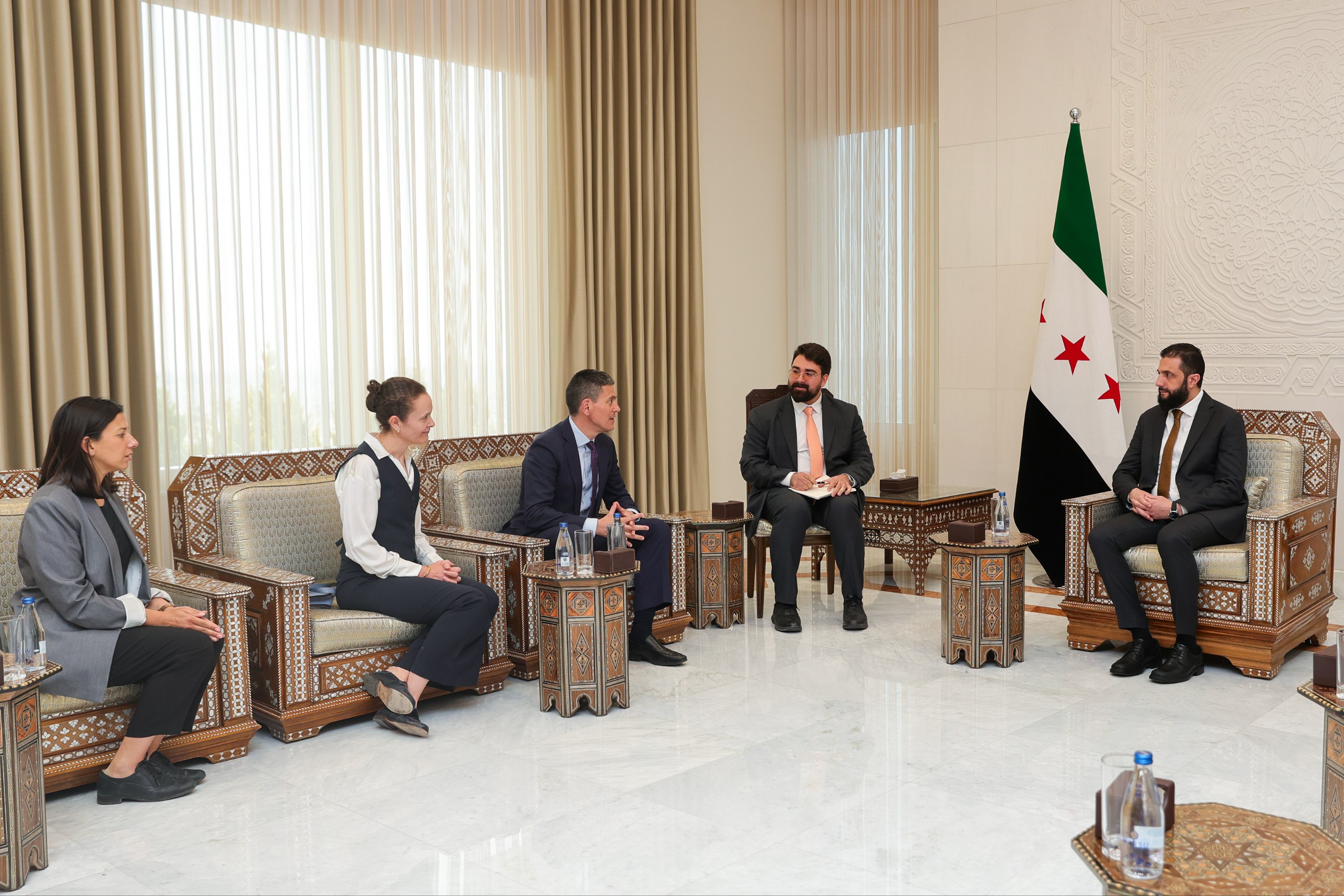 Damas-SANA / Le président de la République arabe syrienne, M. Ahmad al-Charaa, a reçu M. David Miliband, président de l’organisation humanitaire « International Rescue Committee » (IRC), et la délégation qui l’accompagne, au Palais du Peuple à Damas.