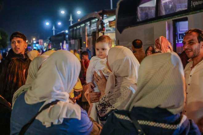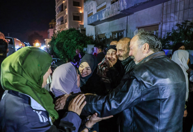 Homs-SANA/ Ce matin, les habitants de Homs ont accueilli avec joie, et chants traditionnels le deuxième convoi de familles déplacées de force revenant des camps de réfugiés en Jordanie vers leurs villes et villages du gouvernorat de Homs .