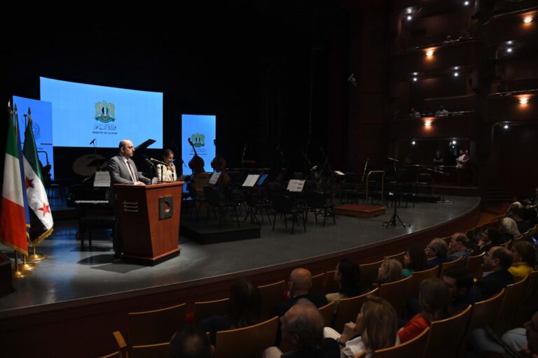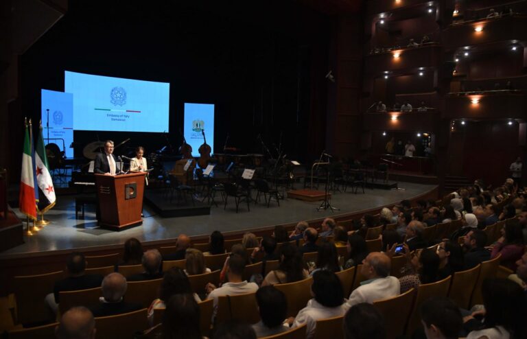 Dans son allocution, le chargé d’affaires de l’ambassade d’Italie à Damas, Stefano Ravagnan, a souligné que cette soirée commémore la fondation de la République italienne et l’amitié entre les deux pays et les deux peuples syrien et italien, précisant que c’est une source de fierté pour les musiciens italiens de se produire aux côtés des musiciens syriens à Damas après tant d’années.