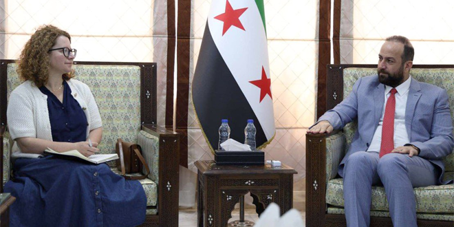 Damas-SANA / Le ministre de l’Information, Dr. Hamza Al-Mustafa, a discuté avec une délégation de l’organisation suisse “Hirondelle” des mécanismes de coopération médiatique durant la phase de la justice transitionnelle en Syrie.