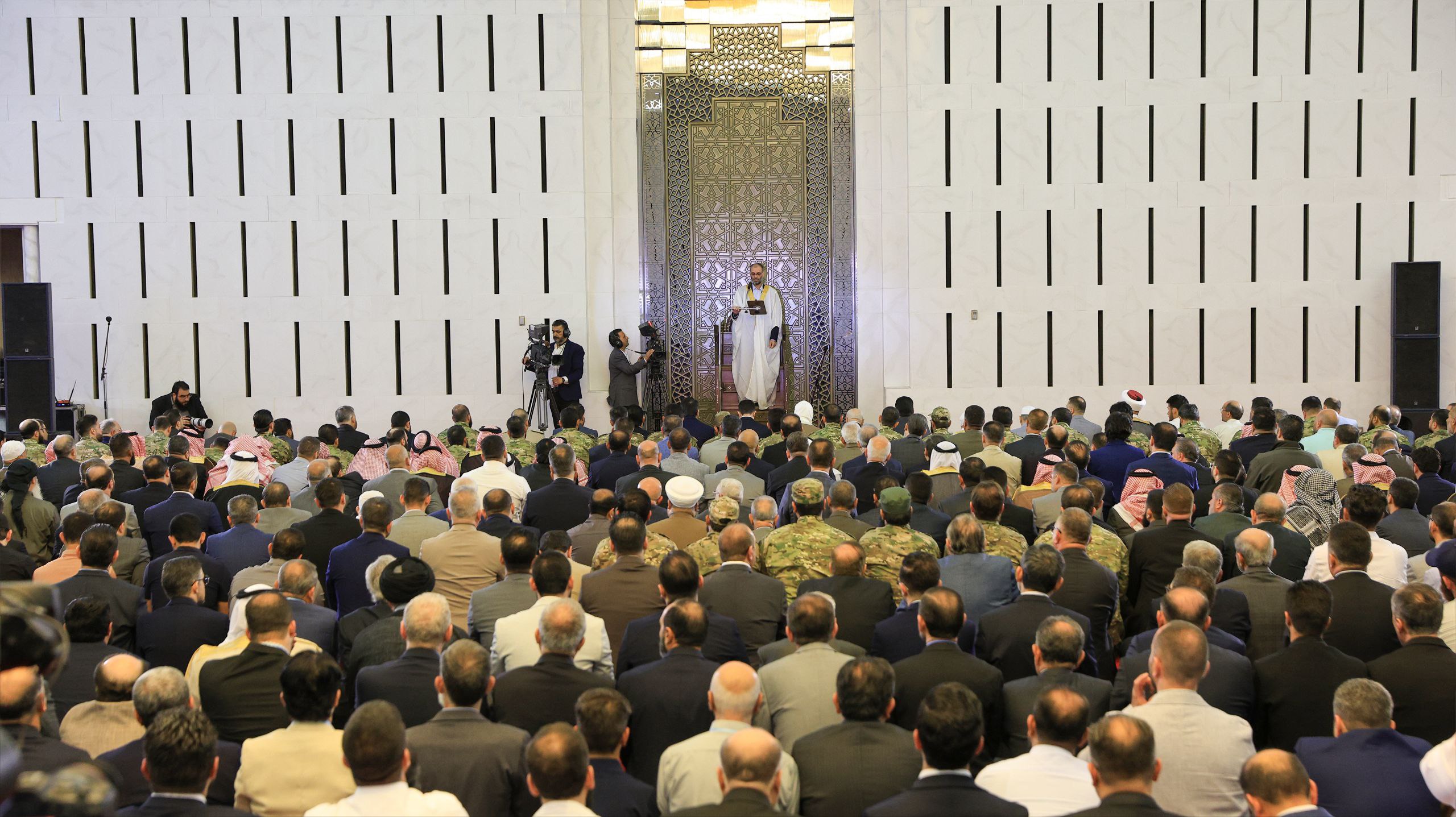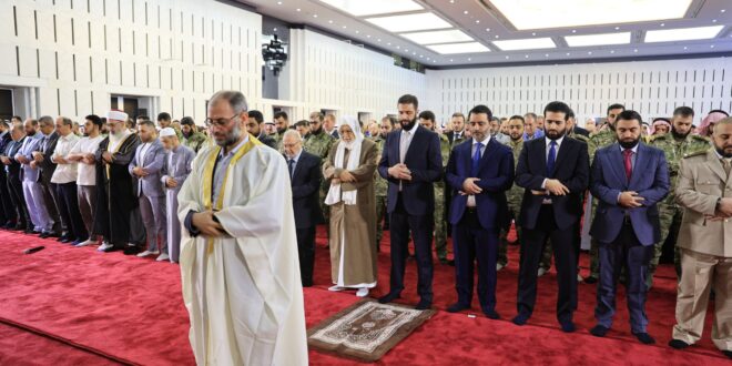 Le Mufti de la République, Cheikh Oussama Al-Rifai, les membres du Conseil suprême de l’Ifta, un certain nombre de responsables de l’État, des commandants de l’armée arabe syrienne, des personnalités populaires ont également effectué la prière avec le président, derrière Son Eminence Cheikh Abdul Rahim Attoun, chef du bureau consultatif pour les affaires religieuses à la présidence de la République et membre du Conseil suprême de l’Ifta.