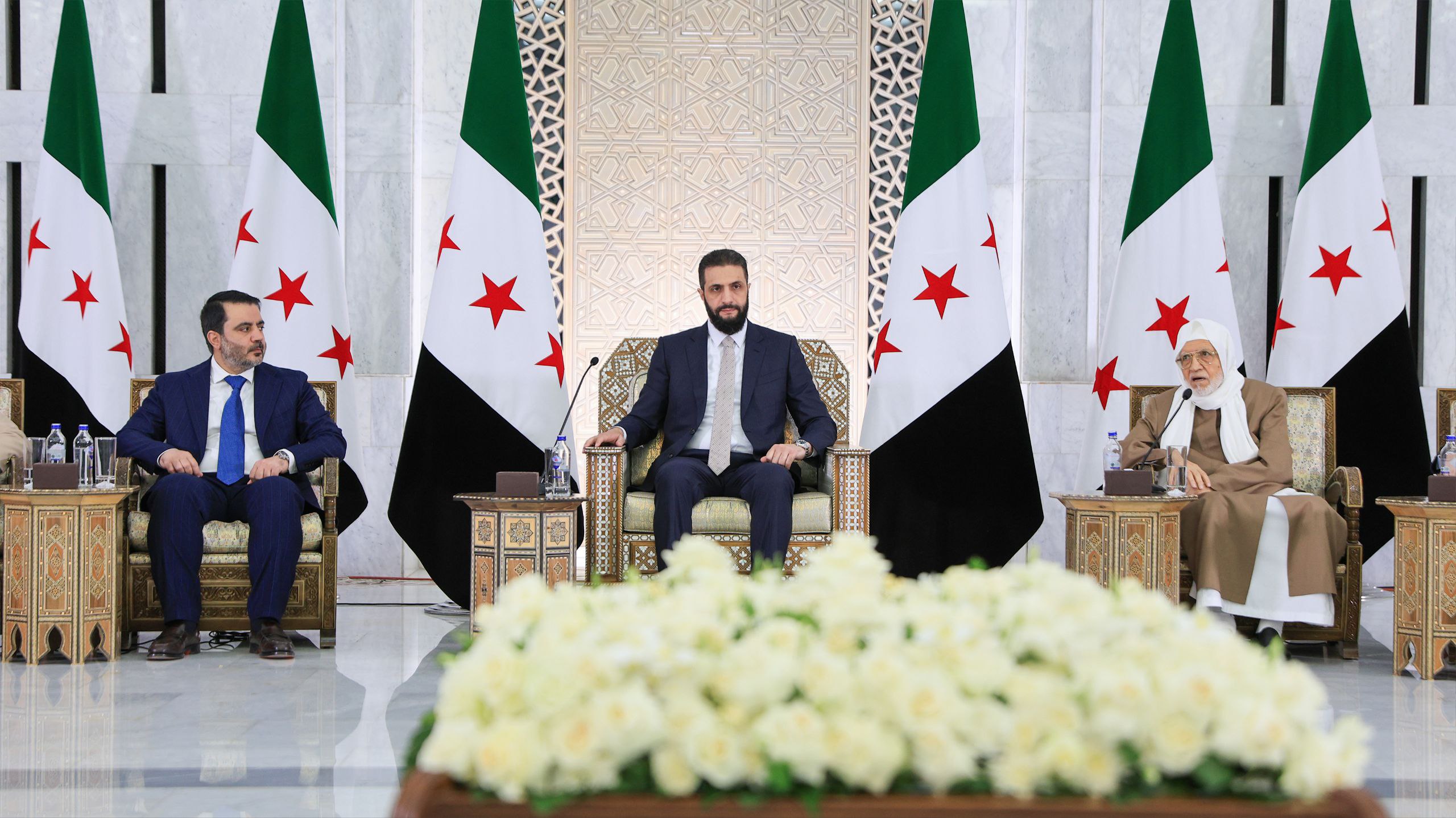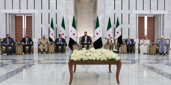 Damas-SANA / Le président Ahmad Al-Charaa a reçu aujourd’hui au Palais du Peuple à Damas …