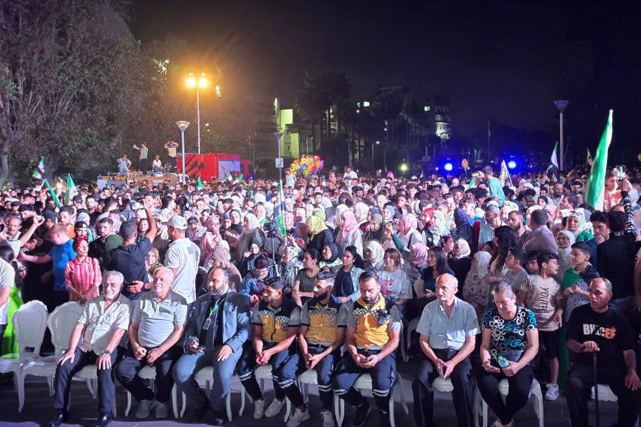 Les habitants de la ville de Tartous célèbrent le lancement de la nouvelle identité visuelle de la Syrie sur la place de la d’al-Muhafaza