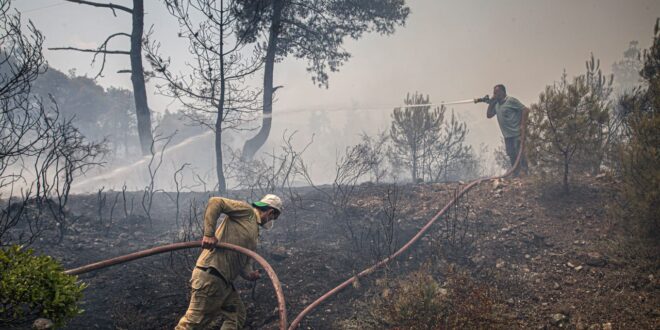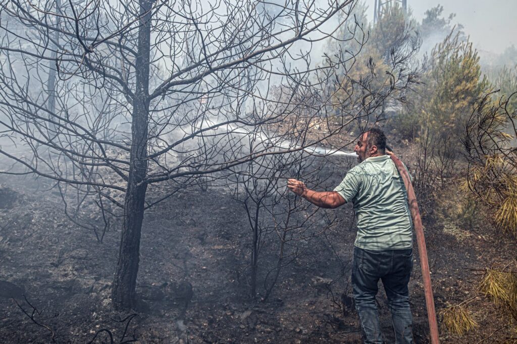 Pour le quatrième jour consécutif, les équipes de la Défense civile syrienne poursuivent leur travail pour éteindre les incendies dans la campagne de Lattaquié