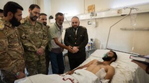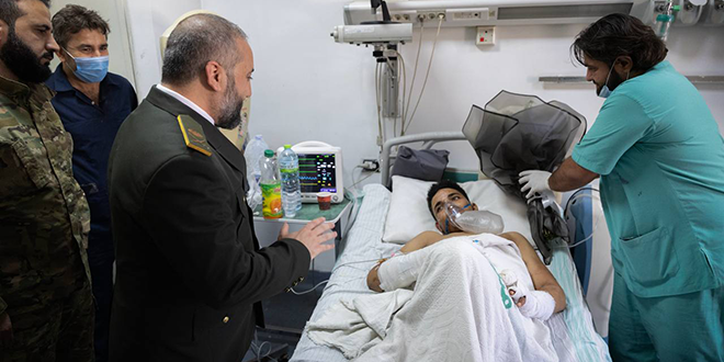Damas – SANA / Une délégation officielle du ministère de la Défense, dirigée par le ministre de la Défense, Murhaf Abou Qasra, a rendu visite aux soldats de l’armée qui avaient été blessés lors des affrontements récents contre des groupes hors-la-loi dans la banlieue de Soueïda.