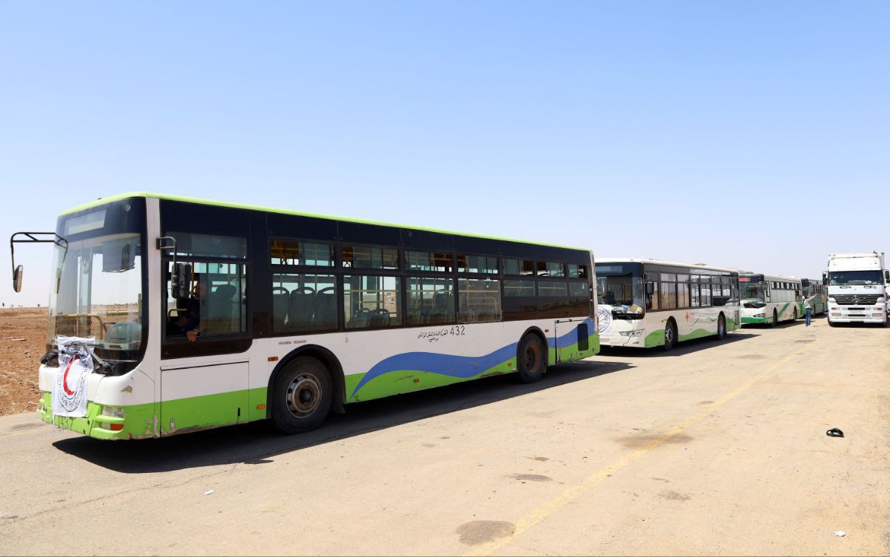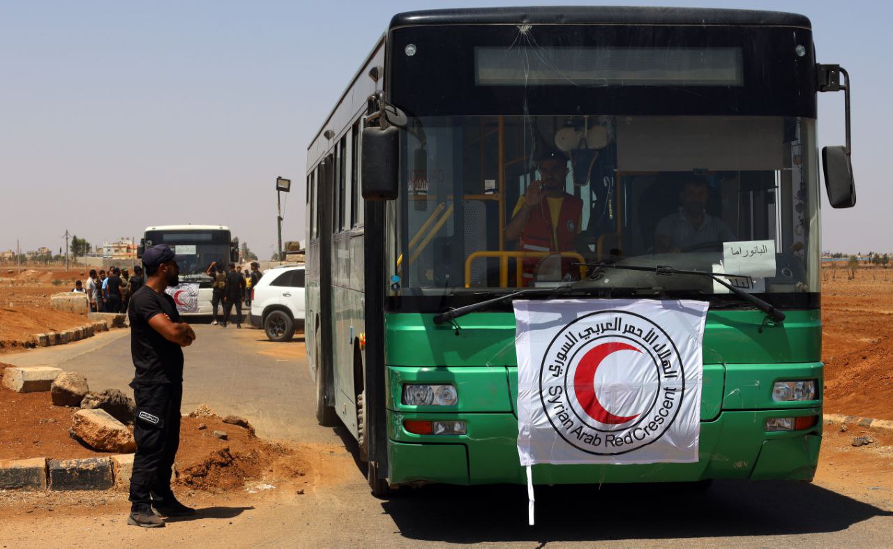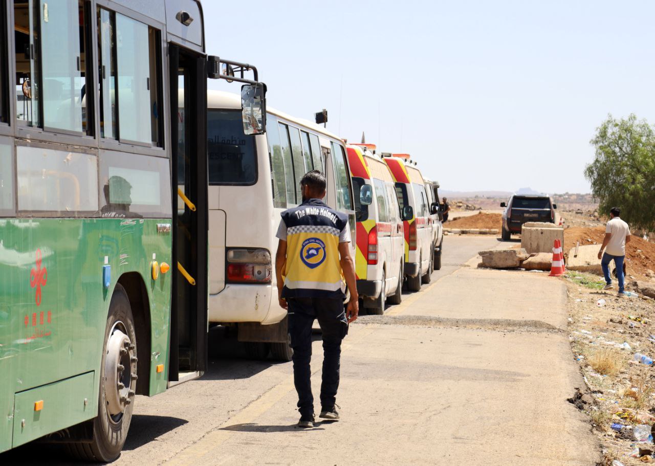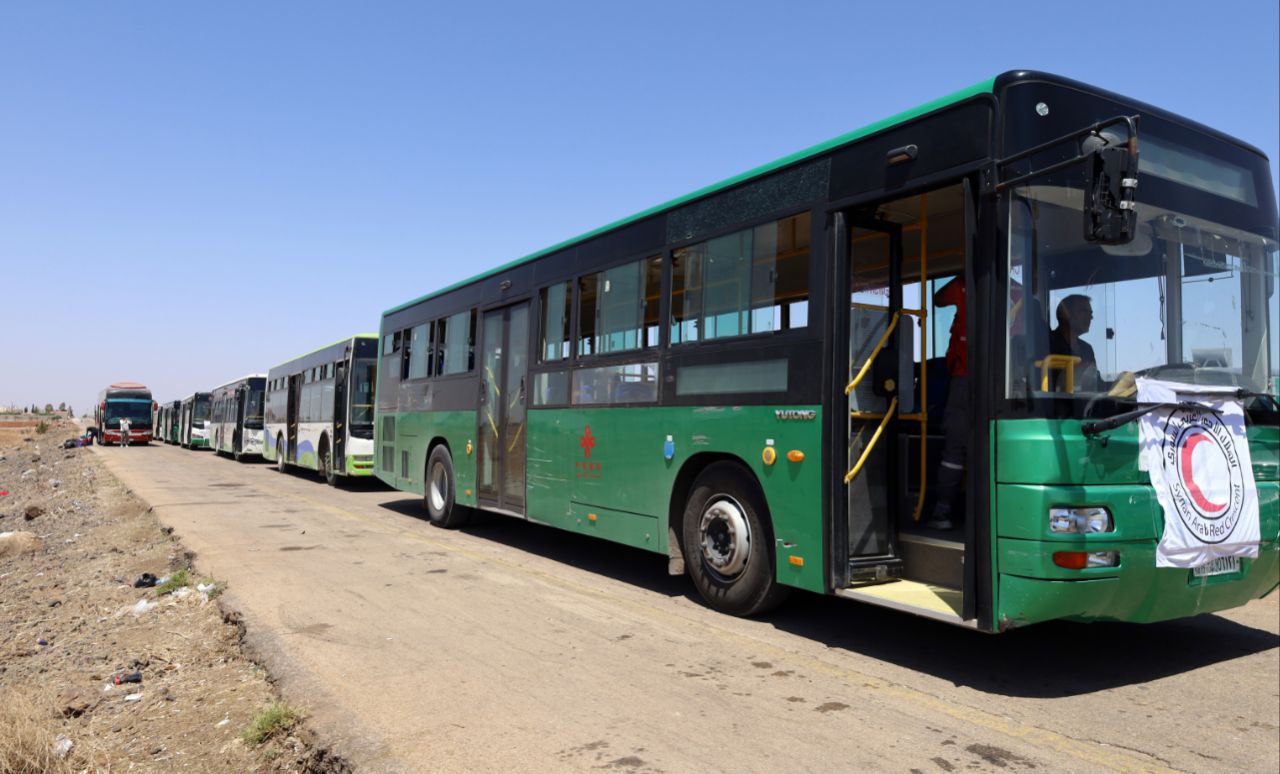 Dix bus accompagnés d’ambulances sont entrés dans Soueïda par le corridor humanitaire de Bosra al-Cham, en préparation de l’évacuation d’un groupe de civils