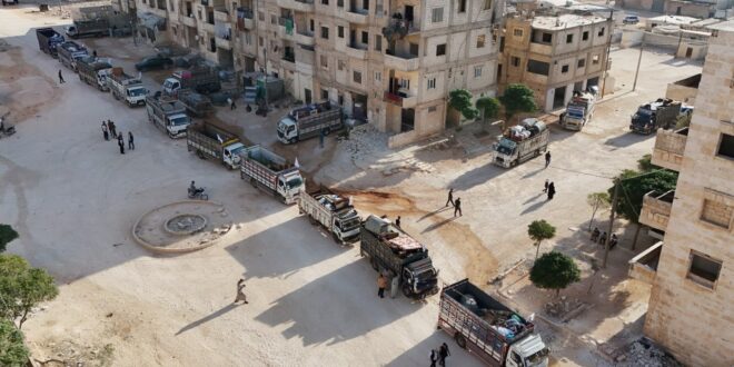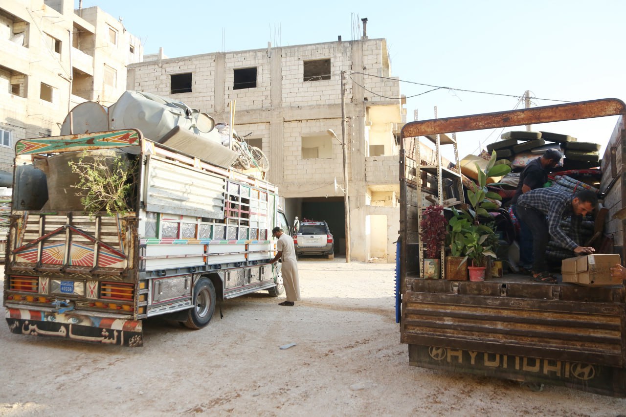 Après des années de déplacement, 50 familles quittent Idlib pour retourner à leurs villages à Al-Qusayr, dans la banlieue de Homs.