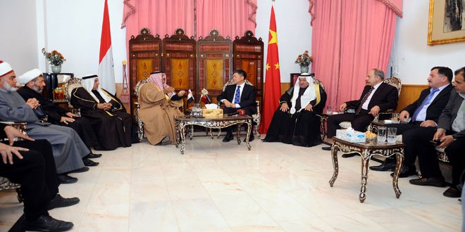 Damas /En signe d’appréciation des positions de la Chine soutenant la Syrie dans sa lutte contre le terrorisme, une délégation de religieux et de tribus a visité aujourd’hui l’ambassade de Chine à Damas.