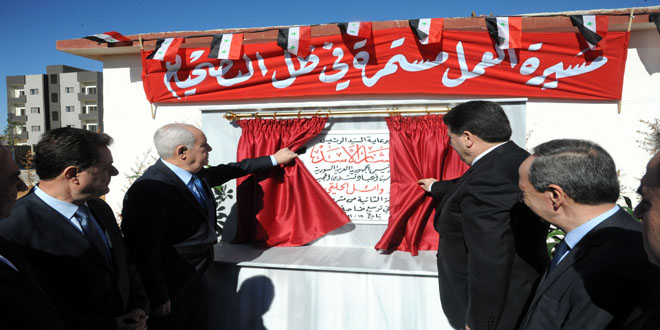 Banlieue de Damas / Sur directives du président Bachar al-Assad, et à l’occasion du 45ème anniversaire du Mouvement de redressement, le président du Conseil des ministres, Dr Waël al-Halaqi, a inauguré 750 unités de logements dans le cadre du projet de l’habitat des jeunes, exécuté dans le faubourg de Qodssaya, avec un montant qui atteint 3.5 milliards de L.S.