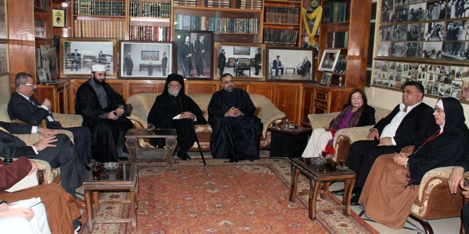 Rencontrant aujourd’hui à Tartous le patriarche d’Antioche et de tout l’Orient pour les Grecs-Catholiques, Mgr Grégoire III Laham et la délégation de la paix mondiale, le ministre Sayyed a expliqué que le terrorisme extrémiste vise les valeurs sublimes de la Syrie et la fraternité entre l’islam et le christianisme.