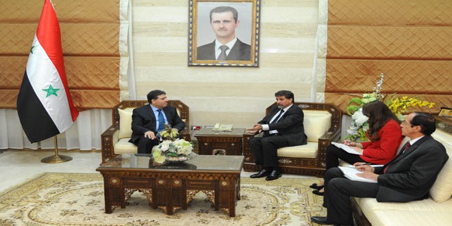 Damas/Le président du Conseil des ministres, Dr Waël Halaqi, a reçu aujourd’hui le directeur du Département politique à l’Organisation de Libération de la Palestine (OLP), l’ambassadeur Anwar Abdel Hadi.