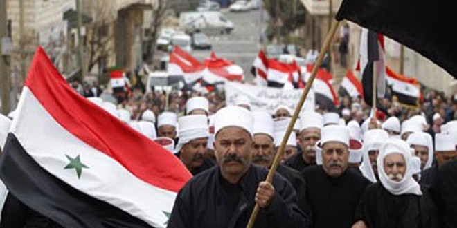 Golan syrien ocucpé/Les Golanais ont affirmé leur attachement à l’identité arabe syrienne et leur allégeance à la mère patrie la Syrie, à l’occasion du 34ème souvenir de l’annexion par l’entité d’occupation israélienne du Golan.
