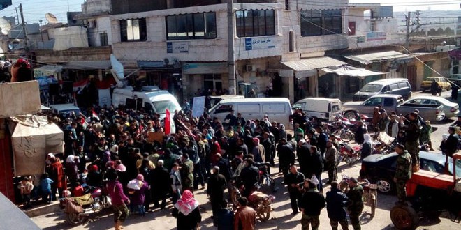 Alep/Des milliers de citoyens sont défilés sur les places et les rues des deux localités de Nebbol et Zaharaa pour célébrer la grande victoire de l’armée arabe syrienne et des comités populaires qui avaient réussi à briser le siège imposé à ces localités.