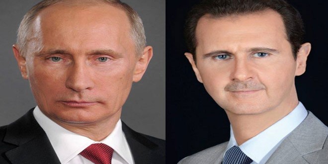 Damas / Le président Bachar al-Assad a reçu aujourd’hui un appel téléphonique de son homologue russe, Vladimir Poutine, au cours duquel les deux présidents ont examiné les perspectives de la crise en Syrie à la lumière de l’exécution de l’arrêt des combats.