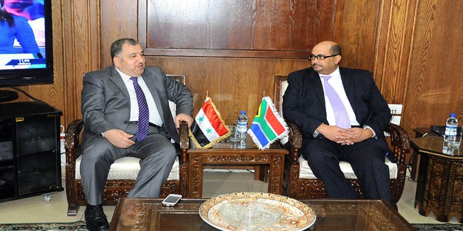 L’ambassadeur sud-africain a indiqué que son pays est en train d’étudier le mémorandum d’entente et que l’ambassade envisage d’organiser le 30 du mois en cours un séminaire à Damas pour propager les travaux des sociétés sud-africaines, appelant le ministère à y participer pour discuter des domaines et des projets de coopération industrielle entre les deux pays.