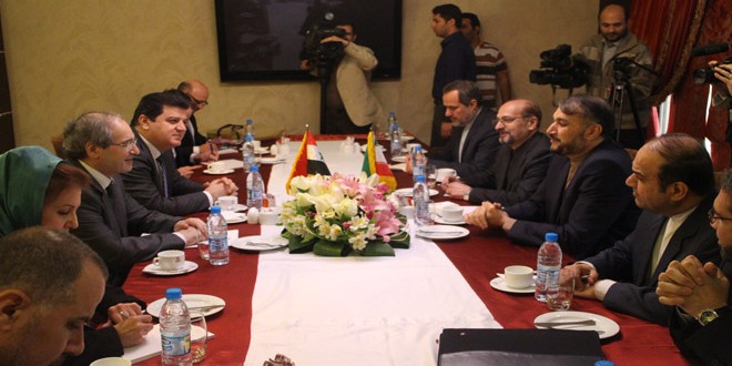 Pour sa part, Abdullahian a réitéré la position de son pays soutenant la Syrie dans sa guerre contre le terrorisme, soulignant la nécessité de parvenir à un règlement politique à travers lequel les Syriens décident de leur avenir sans aucune intervention étrangère.