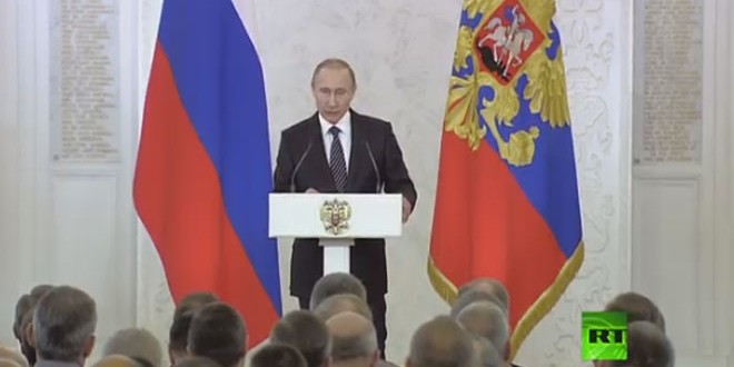 Le président Poutine a assuré que son pays continuera à soutenir le gouvernement syrien, à lui fournir des armes, à entraîner les forces armées syriennes et à l’aider au niveau de renseignement, soulignant que les avions de combat russes en Syrie mèneront des raids sur les positions de Daech, du Front Nosra et d’autres réseaux terroristes.