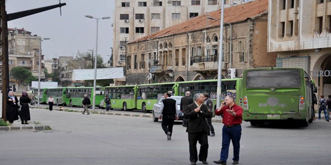 Homs /Les habitants des deux villes de Palmyre et Qaryateine dans la banlieue de Homs ont commencé à regagner à bord d’autobus leurs foyers, simultanément avec la poursuite par les chantiers techniques de leurs travaux dans la réhabilitation des infrastructures détruites par le réseau terroriste “Daech”.