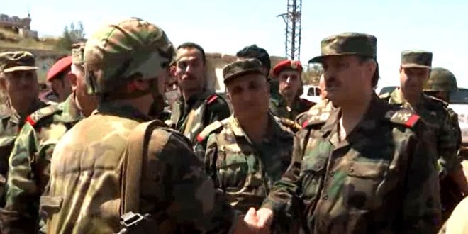 Le général Freij a transmis aux soldats de l’armée arabe syrienne, qui défendent la Patrie, la fierté du président al-Assad pour leur héroïsme, soulignant leurs efforts déployés dans l’élimination des réseaux terroristes et dans l’éradication du terrorisme.