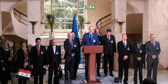 Il a enfin réitéré que la délégation de la République arabe syrienne était venue à Genève pour participer d’une manière positive, responsable et utile au dialogue inter-syrien sans aucune intervention étrangère ou condition préalable.