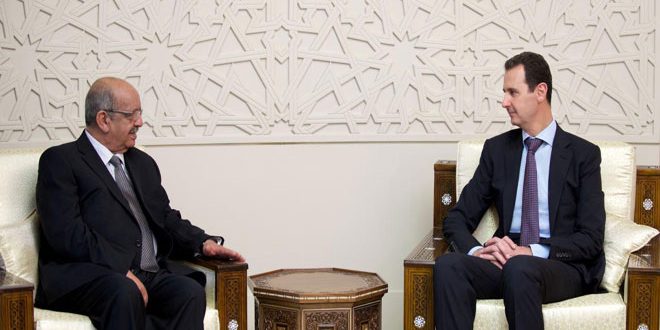 Damas / Le président Bachar al-Assad a reçu aujourd’hui Abdelkader Messahel, ministre algérien des Affaires maghrébines, de l’Union africaine et de la Ligue arabe, chef du côté algérien au mini-comité syro-algérien pour la coopération économique.