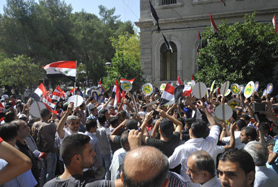 Lors d’un sit-in organisé par l’Université de Damas, les participants ont fait savoir que le serment est une invitation à tous les Syriens honnêtes pour contribuer à la construction de la Patrie aux niveaux économique, social et politique et à la multiplication des opérations de réconciliation nationale dans toutes les régions de la Patrie.