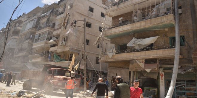 Une source du commandement de la police a affirmé à SANA que des terroristes du “Front Nosra” avaient lancé des roquettes sur les quartiers de Midane, Jamiliya, Aazamiya, Jabiriya, Souleimaniya et Sayyed Ali, ainsi que sur la rue de Barone, ce qui y a fait 6 martyrs et 40 blessés, dont certains sont dans un état critique.