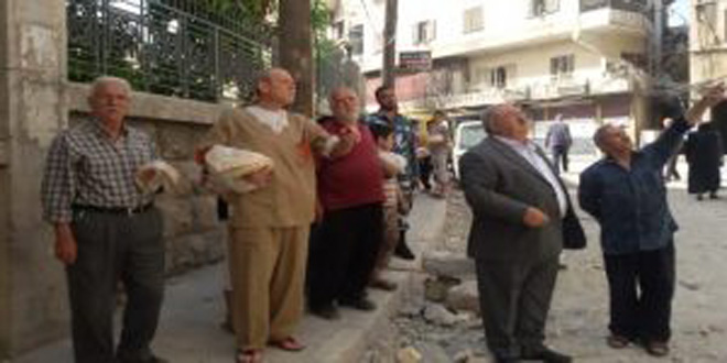 Alep / Le gouverneur d’Alep, Mohammad Marwan Oulabi, a visité aujourd’hui un certain nombre de quartiers que les terroristes avaient attaqués, ces dernières heures, aux roquettes et aux obus de mortier.