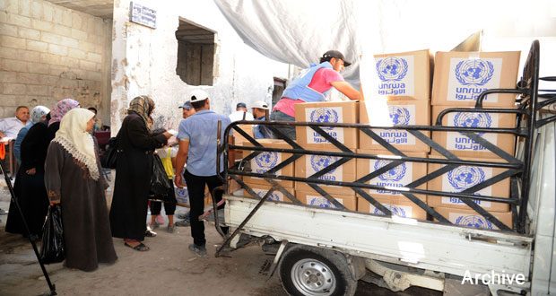 Damas /En soutien du gouvernement syrien et sous la supervision du Haut comité de Secours, la Commission générale des Réfugiés palestiniens arabes et l’UNRWA ont poursuivi la répartition des aides aux habitants du camp de Yarmouk qui l’avaient quitté pour fuir les crimes perpétrés par les réseaux terroristes, notamment Daech.
